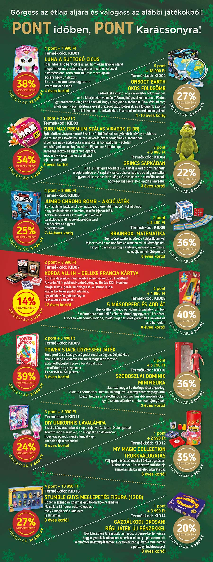 Idén újabb klassz játékok közül válogathatsz! Gyűjts PONTokat minden rendeléseddel, és válogass a színes ajándékkínálatból, ahol mindenki találhat kedvére valót!